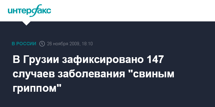Тбилиси. 26 ноября. NTERFAX.RU - В Грузии за сутки лабораторно подтверждены 27 новых случаев заболевания вирусом "свиного гриппа", заявил в четверг журналистам замдиректора Национального центра Грузии по контролю за заболеваниями Шота Цанава.