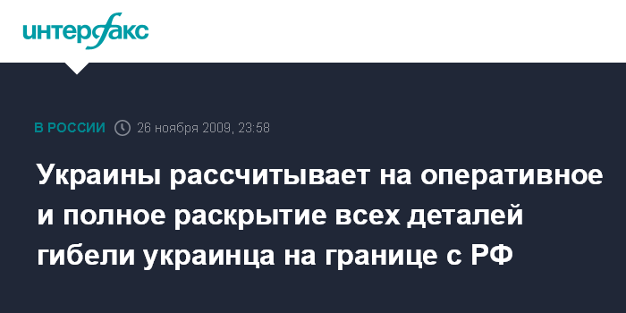 "Рассчитываем на оперативное и полное раскрытие всех деталей этого трагического случая, который произошел на территории Российской Федерации, и особенно условий, при которых российские пограничники открыли огонь на поражение", - говорится в сообщении пресс-службы МИД Украины в четверг вечером.