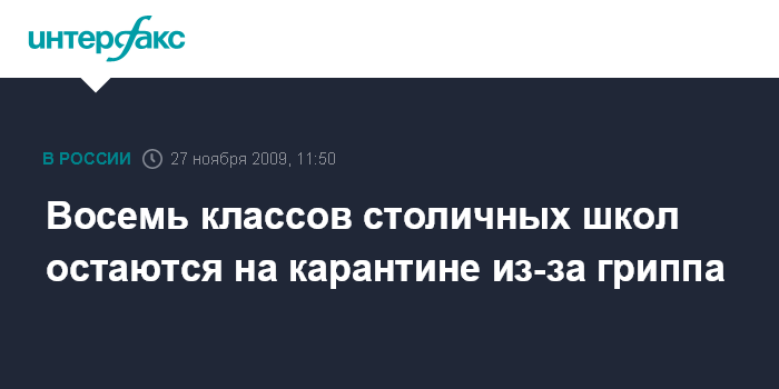 Москва. 27 ноября. INTERFAX.RU – В настоящее время восемь классов в восьми московских школах остаются на карантине из-за гриппа, сообщили "Интерфаксу" в департаменте образования города в пятницу.