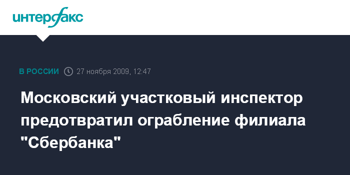 Московский участковый инспектор предотвратил ограбление филиала "Сбербанка"