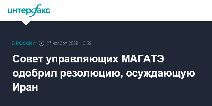 Вена. 27 ноября. INTERFAX.RU - Совет управляющих Международного агентства по атомной энергии (МАГАТЭ) одобрил резолюцию, осуждающую иранскую ядерную программу, сообщает в пятницу агентство ЭФЭ.