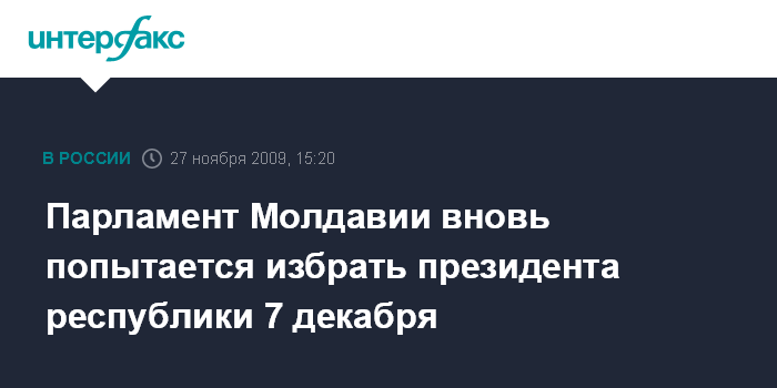 Кишинев. 27 ноября. INTERFAX.RU - Повторные выборы президента Молдавии состояться 7 декабря. Такое решение принял в пятницу парламент Молдавии.