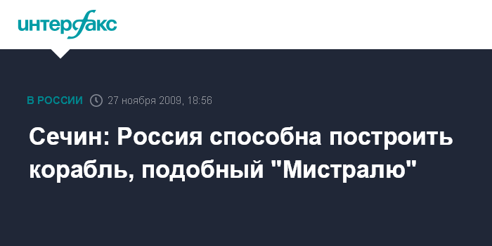 Сечин: Россия способна построить корабль, подобный "Мистралю"