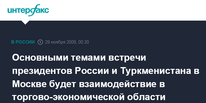 Основными темами встречи президентов России и Туркменистана в Москве будет взаимодействие в торгово-экономической области