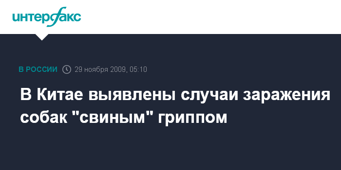 Пекин. 29 ноября. ИНТЕРФАКС-КИТАЙ - Случаи заболевания собак гриппом A/H1N1 выявлен Институтом ветеринарии Сельскохозяйственной академии КНР, сообщили в воскресенье местные СМИ.