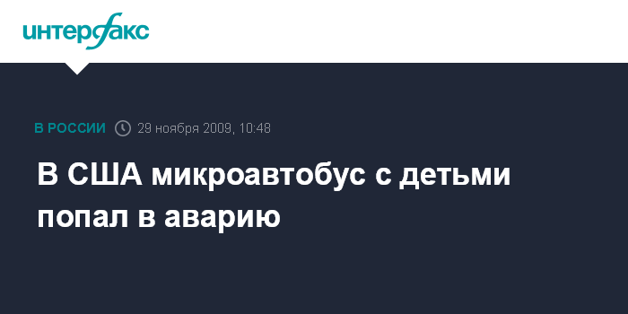 Вашингтон. 29 ноября. INTERFAX.RU - В американском штате Луизиана микроавтобус с детьми столкнулся с грузовиком, в результате чего погибло пять и пострадало десять человек, сообщают местные СМИ со ссылкой на заявление полиции. "В момент столкновения с грузовиком 13 детей были не пристегнуты ремнями безопасности, и их выбросило из микроавтобуса "GMC Safari". Водитель и еще четыре ребенка погибли на месте", - отмечают в полиции. Десятерых пострадавших в тяжелом состоянии госпитализировали в местную больницу.