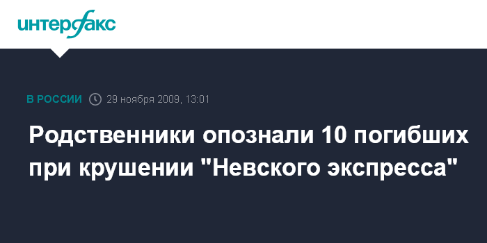 Родственники опознали 10 погибших при крушении "Невского экспресса"