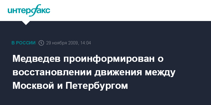 Медведев проинформирован о восстановлении движения между Москвой и Петербургом