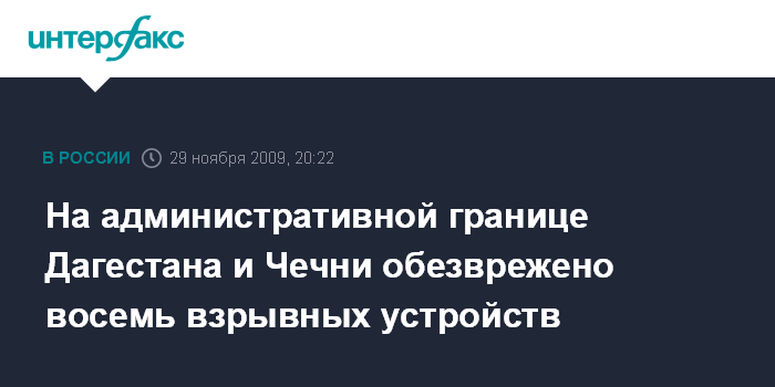 Махачкала. 29 ноября. ИНТЕРФАКС-ЮГ - Восемь мин-ловушек обнаружено и обезврежено сотрудниками правоохранительных органов в ходе профилактических мероприятий, проведенных с 27 по 29 ноября на административной границе Дагестана и Чеченской республики, сообщили сегодня "Интерфаксу" в пресс-службе МВД Дагестана.