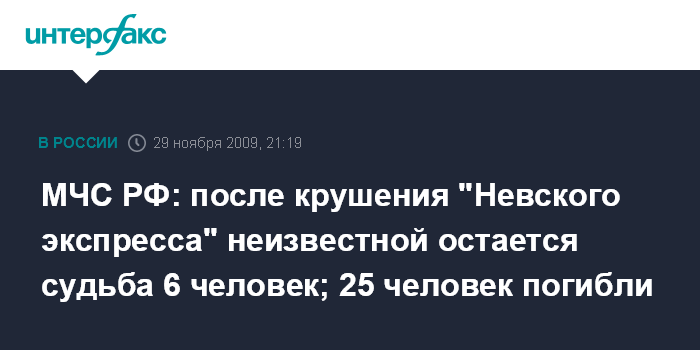 МЧС РФ: после крушения "Невского экспресса" неизвестной остается судьба 6 человек; 25 человек погибли