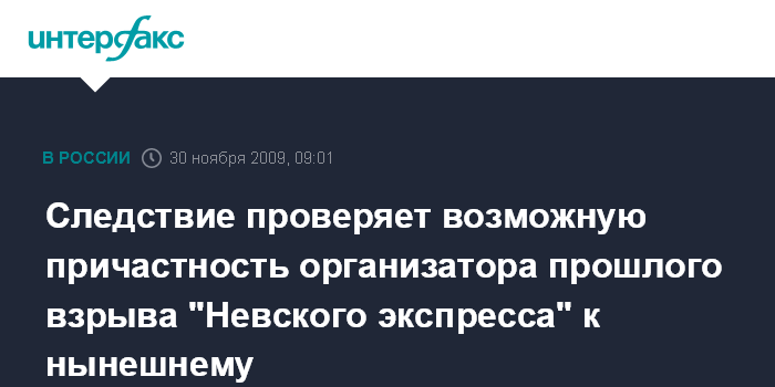 Следствие проверяет возможную причастность организатора прошлого взрыва "Невского экспресса" к нынешнему