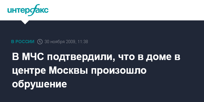 Москва. 30 ноября. INTERFAX.RU - В одном из домов в центре столицы обрушилось перекрытие, сообщил "Интерфаксу" начальник пресс-службы ГУ МЧС по Москве Евгений Бобылев в понедельник.