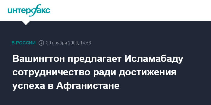 Вашингтон предлагает Исламабаду сотрудничество ради достижения успеха в Афганистане
