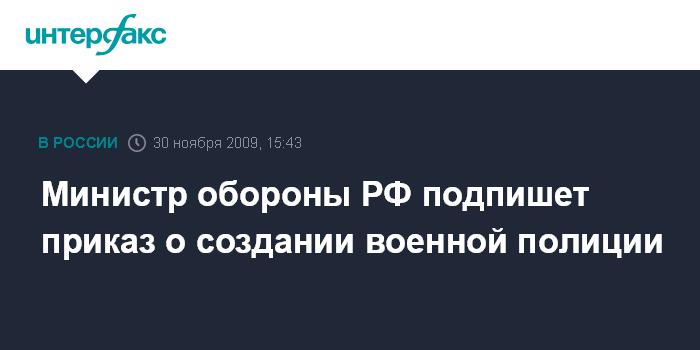 Министр обороны РФ подпишет приказ о создании военной полиции