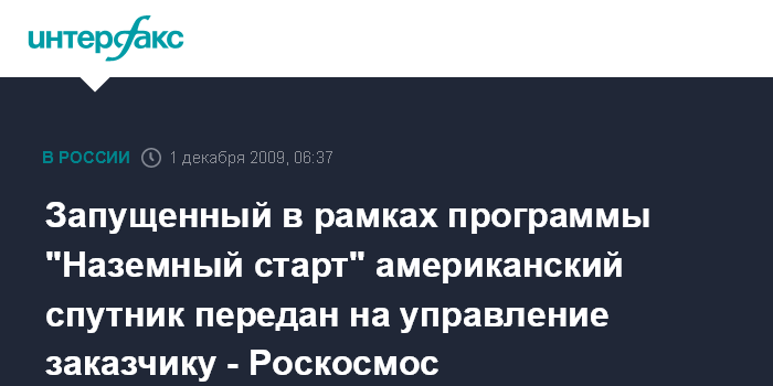 Запущенный в рамках программы "Наземный старт" американский спутник передан на управление заказчику - Роскосмос