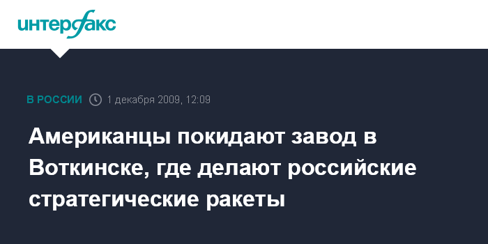 Американцы покидают завод в Воткинске, где делают российские стратегические ракеты
