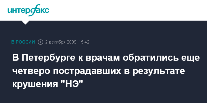 В Петербурге к врачам обратились еще четверо пострадавших в результате крушения "НЭ"