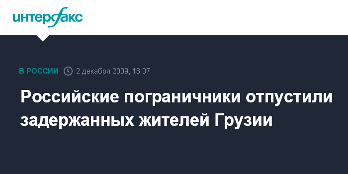 Тбилиси. 2 декабря. INTERFAX.RU - Граждане Грузии, задержанные российскими пограничниками за нарушение границы, отпущены после выплаты штрафа, сообщают в среду грузинские СМИ.