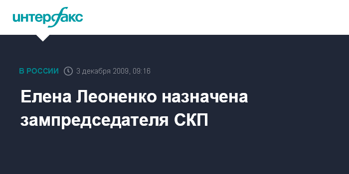 Москва. 3 декабря. INTERFAX.RU - Президент России Дмитрий Медведев своим указом назначил Елену Леоненко заместителем председателя Следственного комитета при прокуратуре РФ, сообщили в четверг в пресс-службе главы государства.