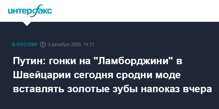 Путин: гонки на "Ламборджини" в Швейцарии сегодня сродни моде вставлять золотые зубы напоказ вчера