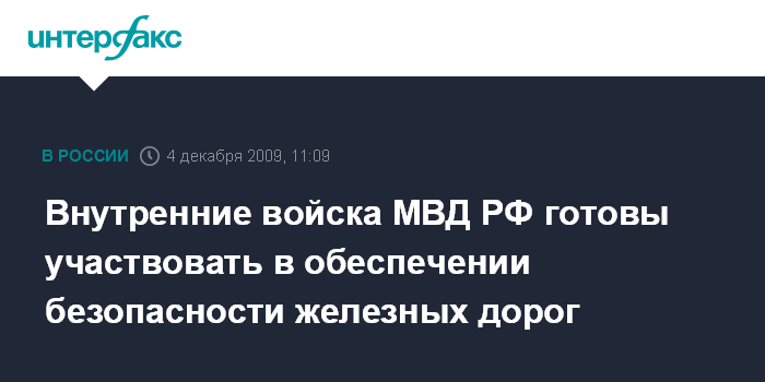 Внутренние войска МВД РФ готовы участвовать в обеспечении безопасности железных дорог