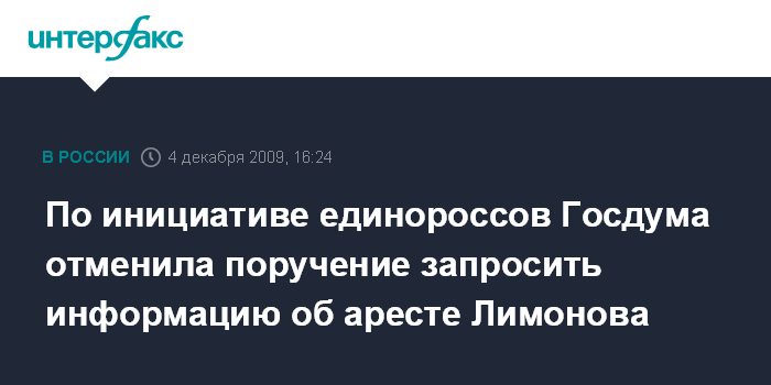Москва. 4 декабря. INTERFAX.RU - Госдума отменила собственное решение, принятое более двух часов назад, - поручить комитету по законодательству запросить у правоохранительных органов информацию о правомочности задержания и ареста на 10 суток 31 октября одного из лидеров движения "Другая Россия" Эдуарда Лимонова.