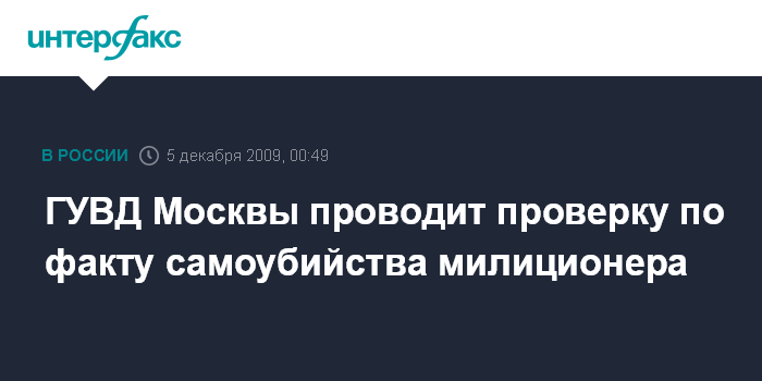 ГУВД Москвы проводит проверку по факту самоубийства милиционера
