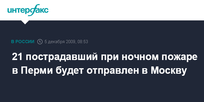 21 пострадавший при ночном пожаре в Перми будет отправлен в Москву