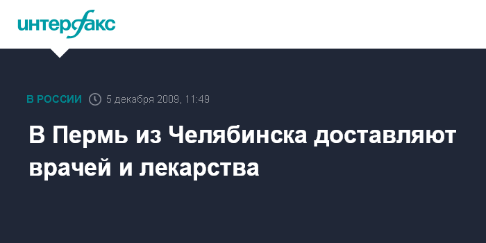 Москва. 5 декабря. INTEFAX.RU - Самолетом МЧС России Як-42 из Челябинска в Пермь доставляются врачи, медицинское оборудование и медикаменты. "Самолет Як-42 вылетел из Челябинска в 11:18 мск. На его борту 14 врачей, около 1 тонны медицинского оборудования и медикаментов. В частности, аппараты искусственной вентиляции легких", - сообщили "Интерфаксу" в субботу в Управлении информации МЧС России.