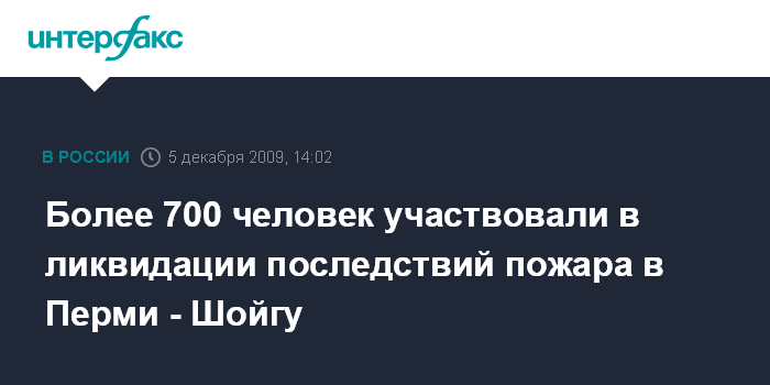 Более 700 человек участвовали в ликвидации последствий пожара в Перми - Шойгу