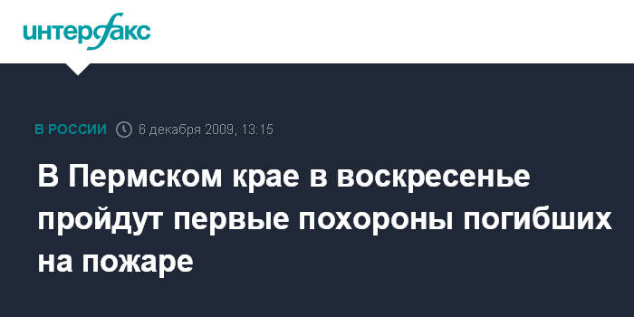 В Пермском крае в воскресенье пройдут первые похороны погибших на пожаре