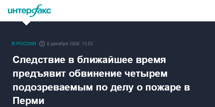 Следствие в ближайшее время предъявит обвинение четырем подозреваемым по делу о пожаре в Перми