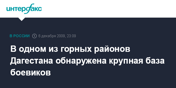 Ростов-на-Дону. 6 декабря. ИНТЕРФАКС-ЮГ - Крупная база боевиков, состоящая из блиндажа, склада с продовольствием и обмундированием, обнаружена в горно-лесистой местности на территории Сергокалинского района Дагестана.