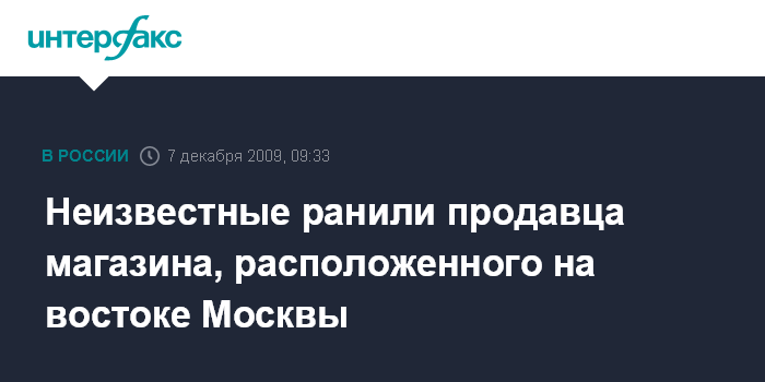 Неизвестные ранили продавца магазина, расположенного на востоке Москвы