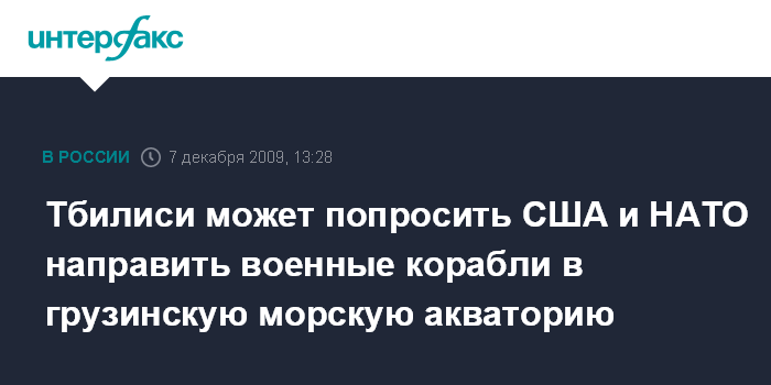 Тбилиси. 7 декабря. INTERFAX.RU - Вице-спикер парламента Грузии Паата Давитая намерен обратиться к правительству Грузии с предложением разработать документы о введении в грузинские территориальные воды Черного моря военных кораблей НАТО или США.