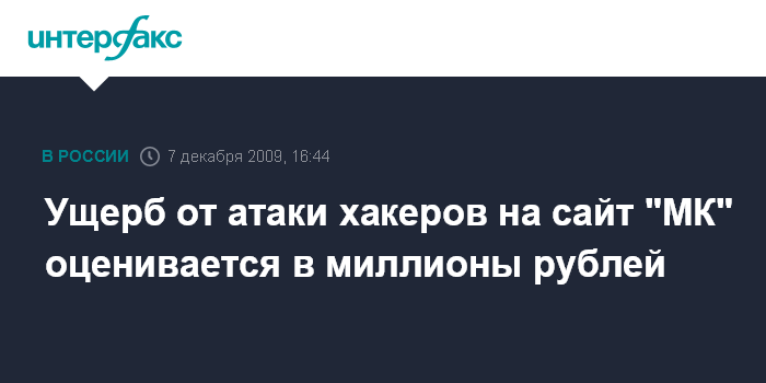 Ущерб от атаки хакеров на сайт "МК" оценивается в миллионы рублей