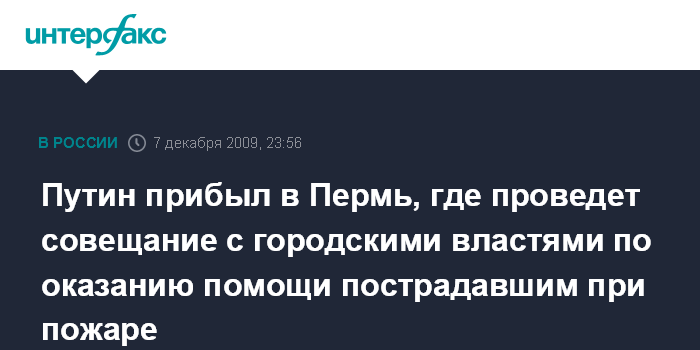 Путин прибыл в Пермь, где проведет совещание с городскими властями по оказанию помощи пострадавшим при пожаре