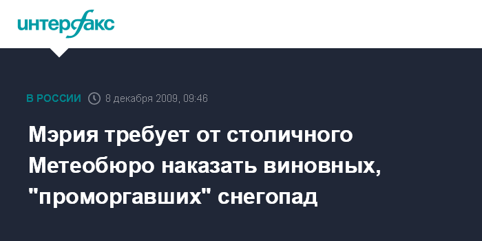 Мэрия требует от столичного Метеобюро наказать виновных, "проморгавших" снегопад