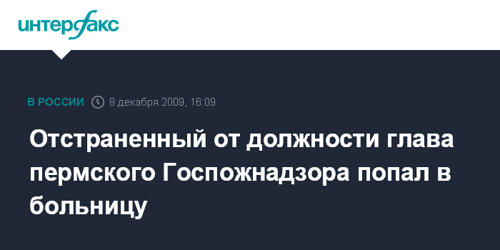 Пермь. 8 декабря. INTERFAX.RU - Начальник управления государственного пожарного надзора ГУ МЧС России по Пермскому краю Владимир Мухутдинов госпитализирован в одну из пермских клиник.
