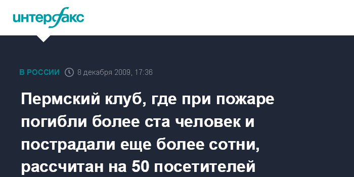 Пермский клуб, где при пожаре погибли более ста человек и пострадали еще более сотни, рассчитан на 50 посетителей