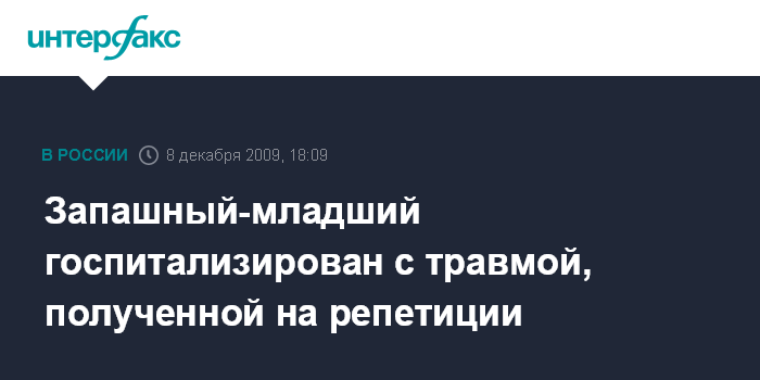 Запашный-младший госпитализирован с травмой, полученной на репетиции