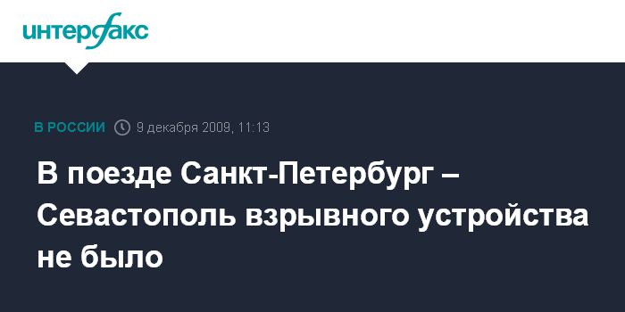 Москва. 9 декабря. INTERFAX.RU - Взрывного устройства в поезде N7 Санкт-Петербург - Севастополь обнаружено не было, подчеркивают в Службе безопасности Украины. Как рассказали агентству "Интерфакс-Украина" в пресс-центре СБУ в среду, в линейное отделение милиции на станции "Харьков" во вторник вечером поступил анонимный звонок о том, что якобы в поезде находится взрывное устройство.