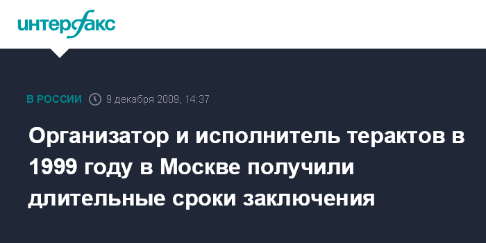 Организатор и исполнитель терактов в 1999 году в Москве получили длительные сроки заключения