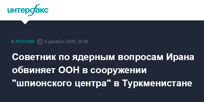 Тегеран. 9 декабря. ИНТЕРФАКС - Советник по ядерным вопросам и эксперт в области международной политики Ирана Абульфазль Захреванд обвинил ООН в размещении "шпионского центра" в Туркменистане близ границы с Ираном, сообщило в среду агентство ЭФЭ.