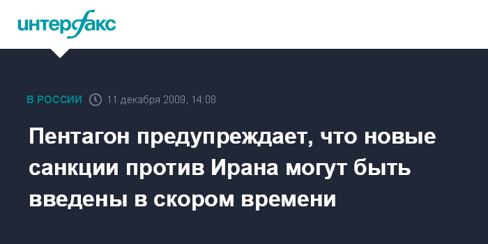 Пентагон предупреждает, что новые санкции против Ирана могут быть введены в скором времени