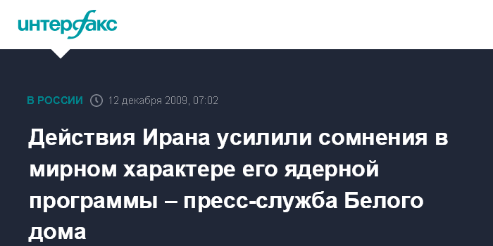 "До настоящего момента Иран не использовал возможностей для начала выстраивания мер доверия, включая предложение МАГАТЭ о Тегеранском исследовательском реакторе" - подчеркивает Белый дом.