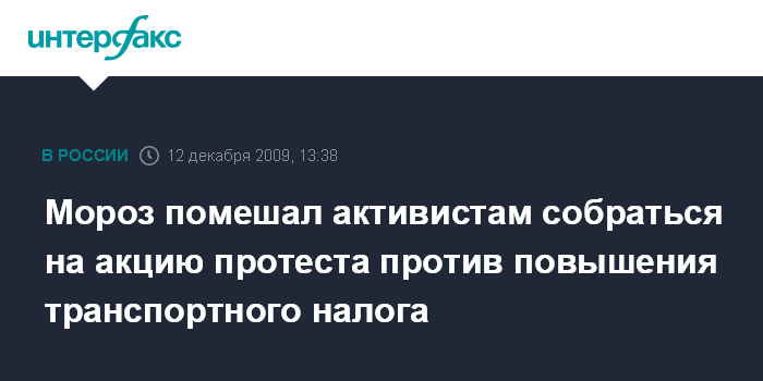 Мороз помешал активистам собраться на акцию протеста против повышения транспортного налога