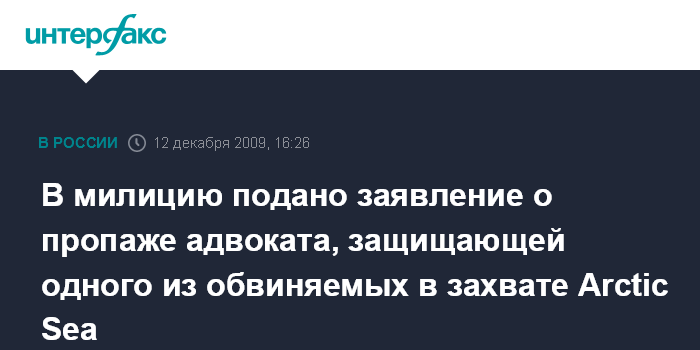 В милицию подано заявление о пропаже адвоката, защищающей одного из обвиняемых в захвате Arctic Sea