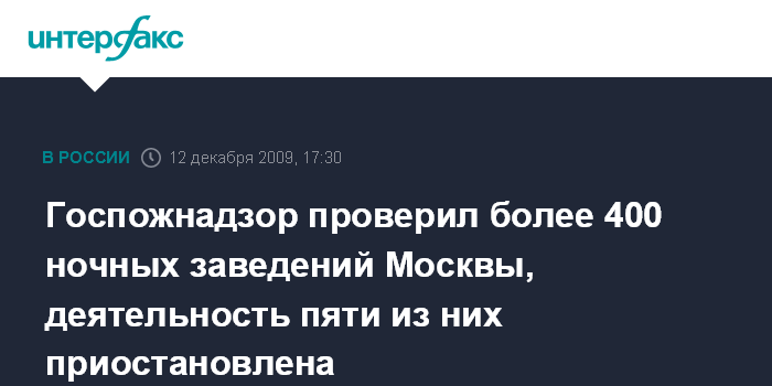 Госпожнадзор проверил более 400 ночных заведений Москвы, деятельность пяти из них приостановлена