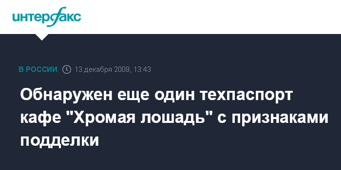 Обнаружен еще один техпаспорт кафе "Хромая лошадь" с признаками подделки